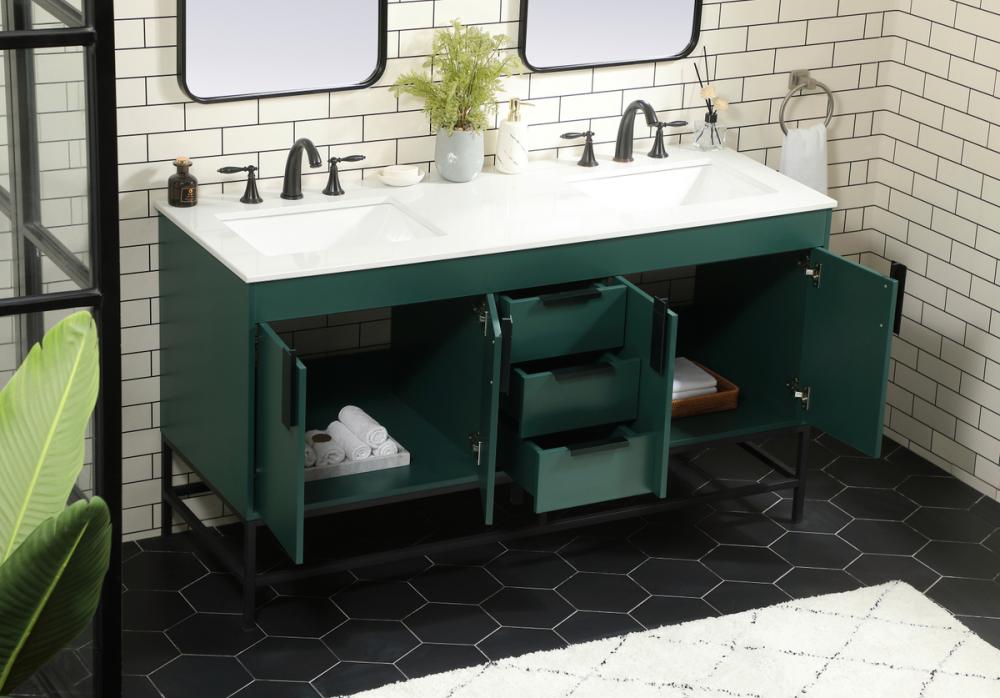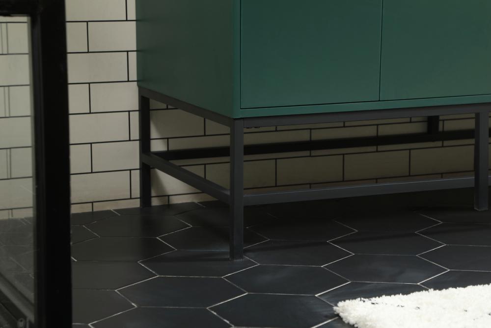 This vanity is a sleek-looking piece of bathroom furniture that is easy to incorporate into your design scheme. The cabinet features a smooth door panel with an oversized steel handle and soft close hinges provide ample room for accessories. Constructed of engineered wood, the powder-coated metal rod legs are an urban industrial look that we love. Minor assembly of the metal legs needed to get this vanity up and running.