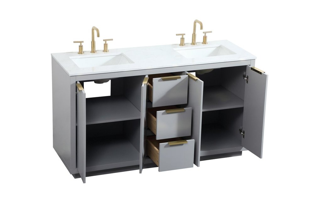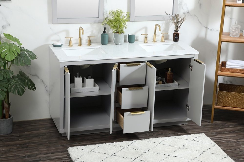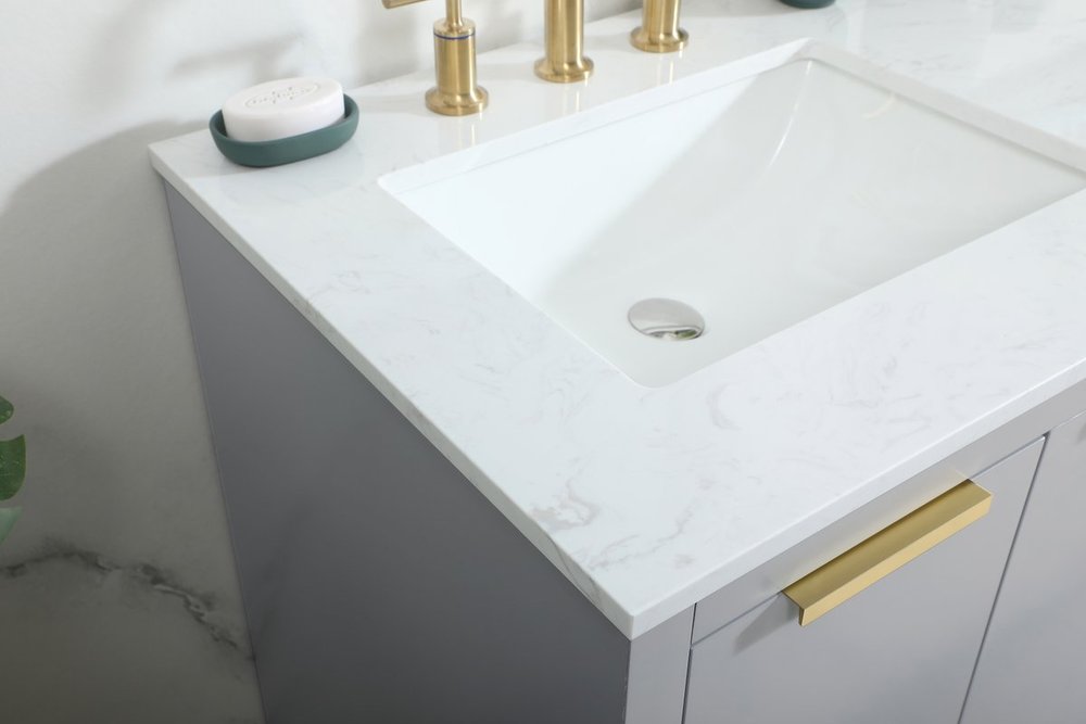 The Blake collection vanity cabinet will be a modern furniture statement piece in your bathroom. Our color combination creates a calming atmosphere in the room. The gold handles bring a vibrant touch to balance the vanity. With the simplistic clean lines, the cabinet catches eyes with its beautiful smooth surface. Open the cabinet doors to store what you desire and make use of the spacious area. Gently close the door and the soft closing glides will quietly closes the door. To top it off, the calacatta engineered marble adds a luxury and modern finish to the durable stonetop.
