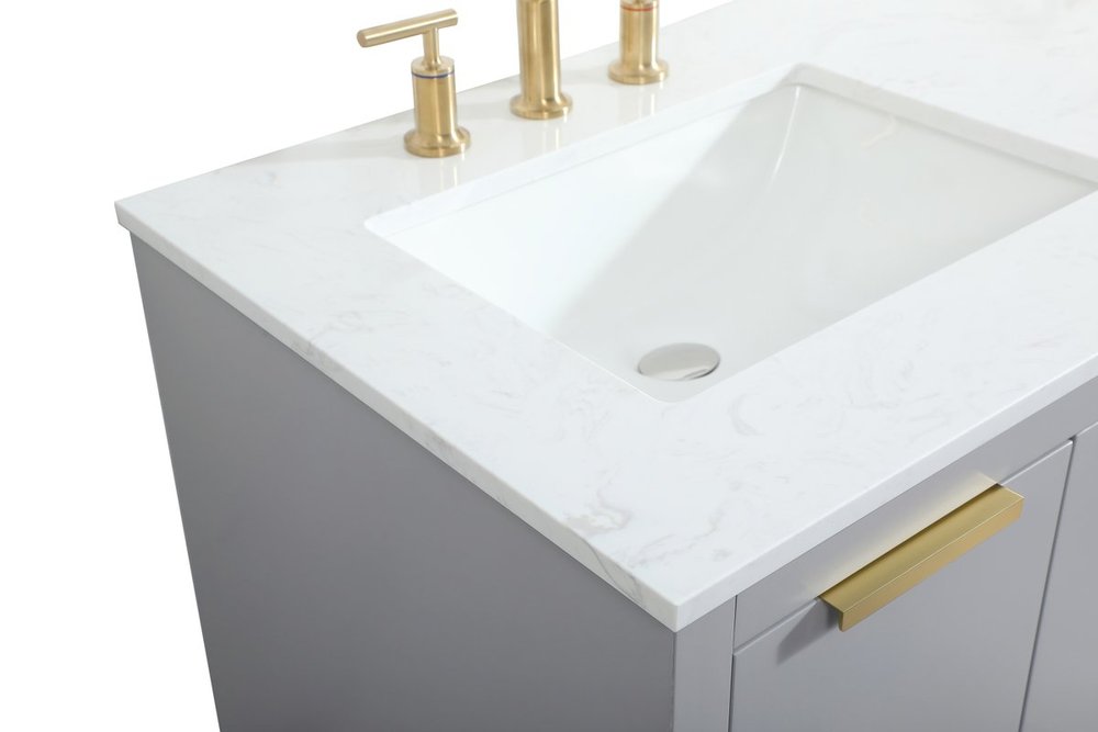Comes with an undermount porcelain sink and a durable calacatta engineered marble stone top