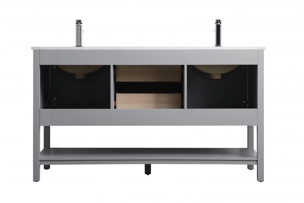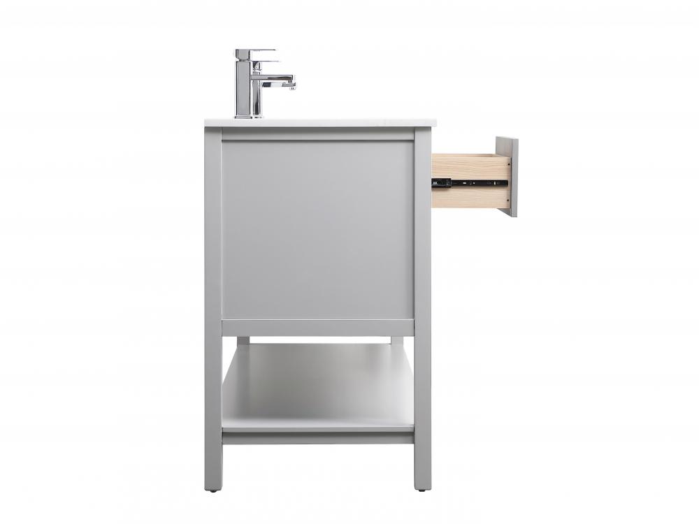Boasting a lower open shelf for additional storage, this vanity offers a practical area to display decor or stow away essentials, seamlessly blending functionality with a touch of style for your bathroom.