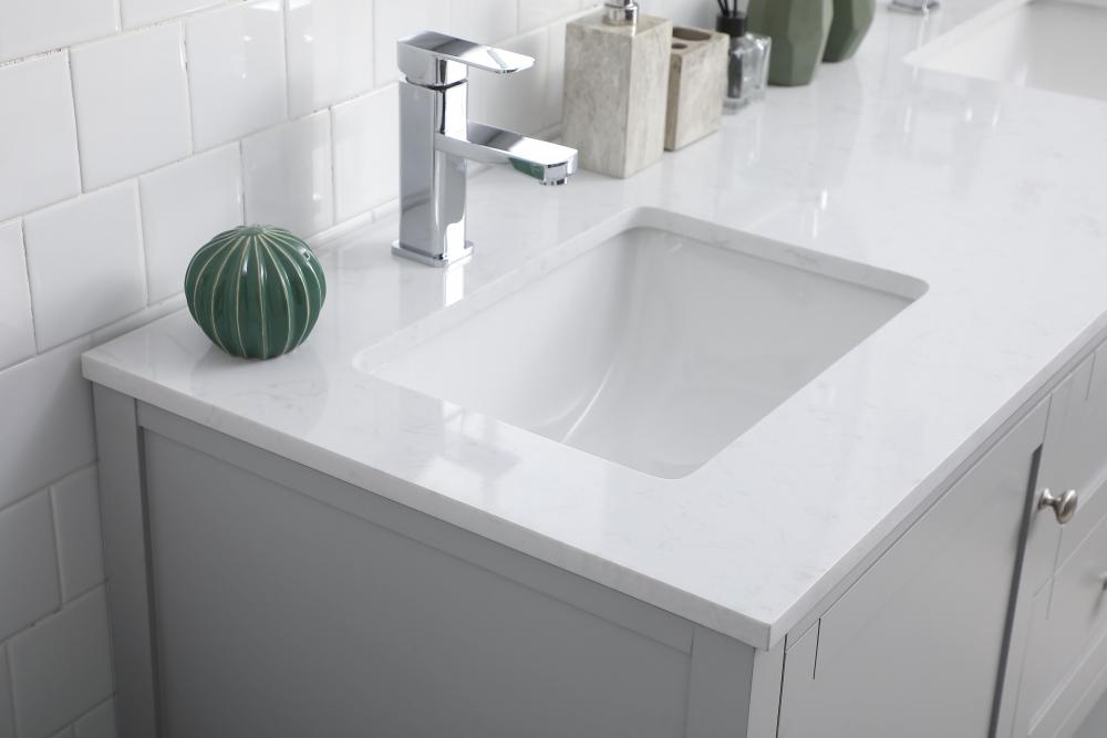 Displaying a chic straight edge cut and crafted with precision, our vanity boasts an engineered marble top that adds a dash of modern elegance to your space.