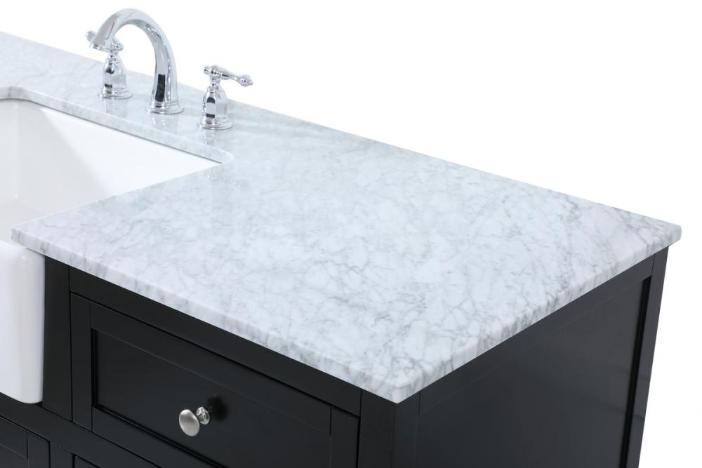 Comes with an apron porcelain sink and durable marble stone top in carrara white finish