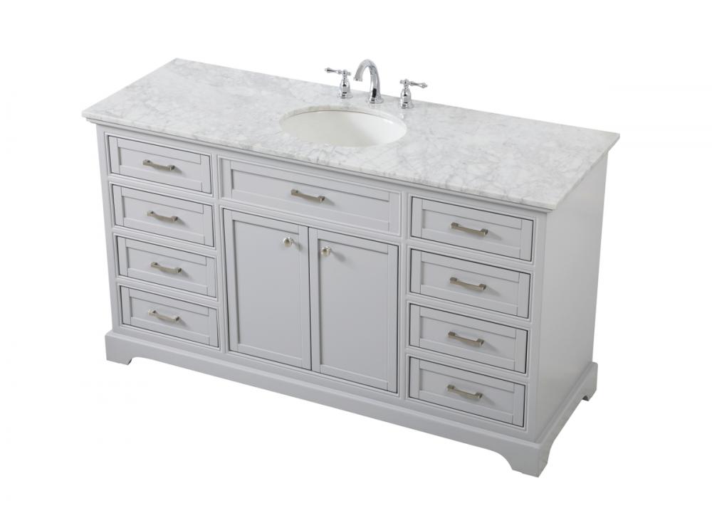 Comes with an undermount porcelain sink and a carrara white marble countertop