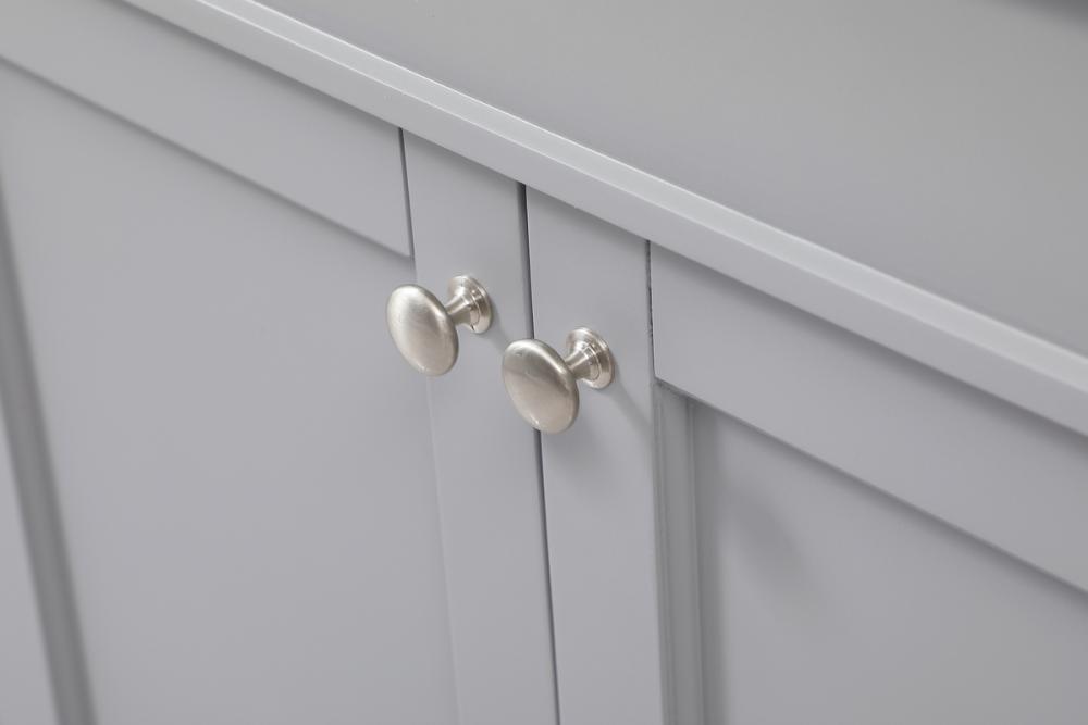 This transitional vanity is a beautiful piece of bathroom furniture will look amazing in your design scheme. The cabinet features a shaker style smooth door panel with simple round knobs and soft close hinges provide ample room for accessories. Packed with multiple side drawers with soft close glides for added comfort and full access to bath supplies. Convenient deep drawer stores all of your tall bath essentials. Constructed of engineered wood and solid wood legs with hand painted finish. The durable engineered marble countertop is a versatile material in an ivory white finish. Minor assembly of the legs needed to get this vanity up and running.