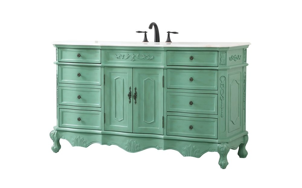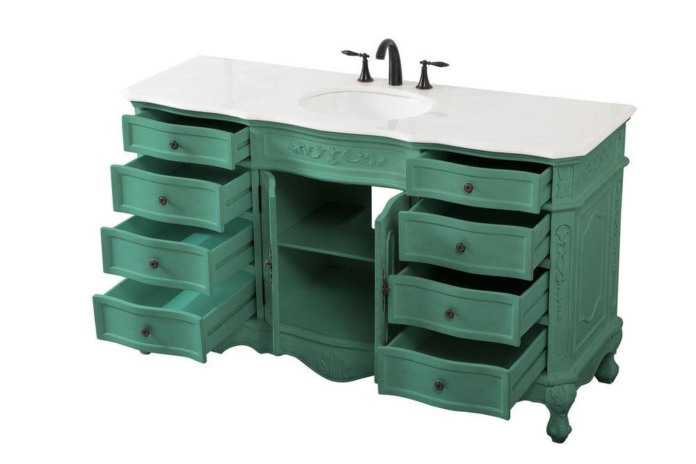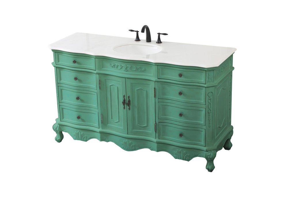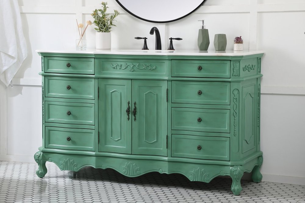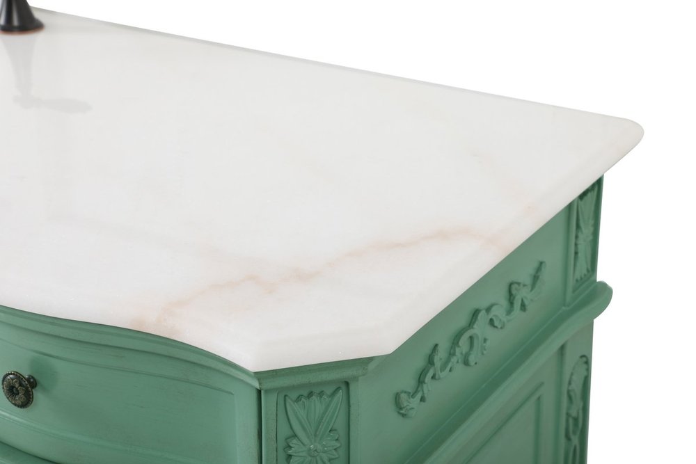 Comes with an off-white marble top with slight brown veining and bevel edge design, please note that due to the natural characteristics of the stone, the color and/or pattern of each countertop may vary from the pictures.