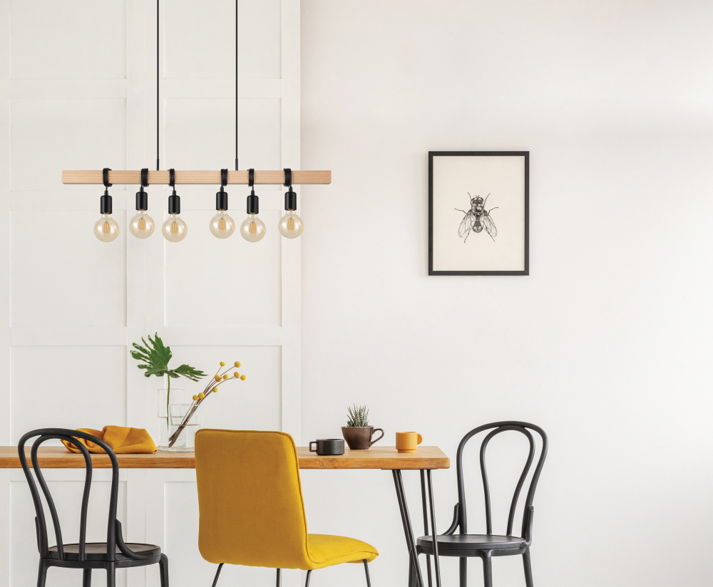 6 LT Open Bulb Track Light w/ a Natural Wood & Black Finish