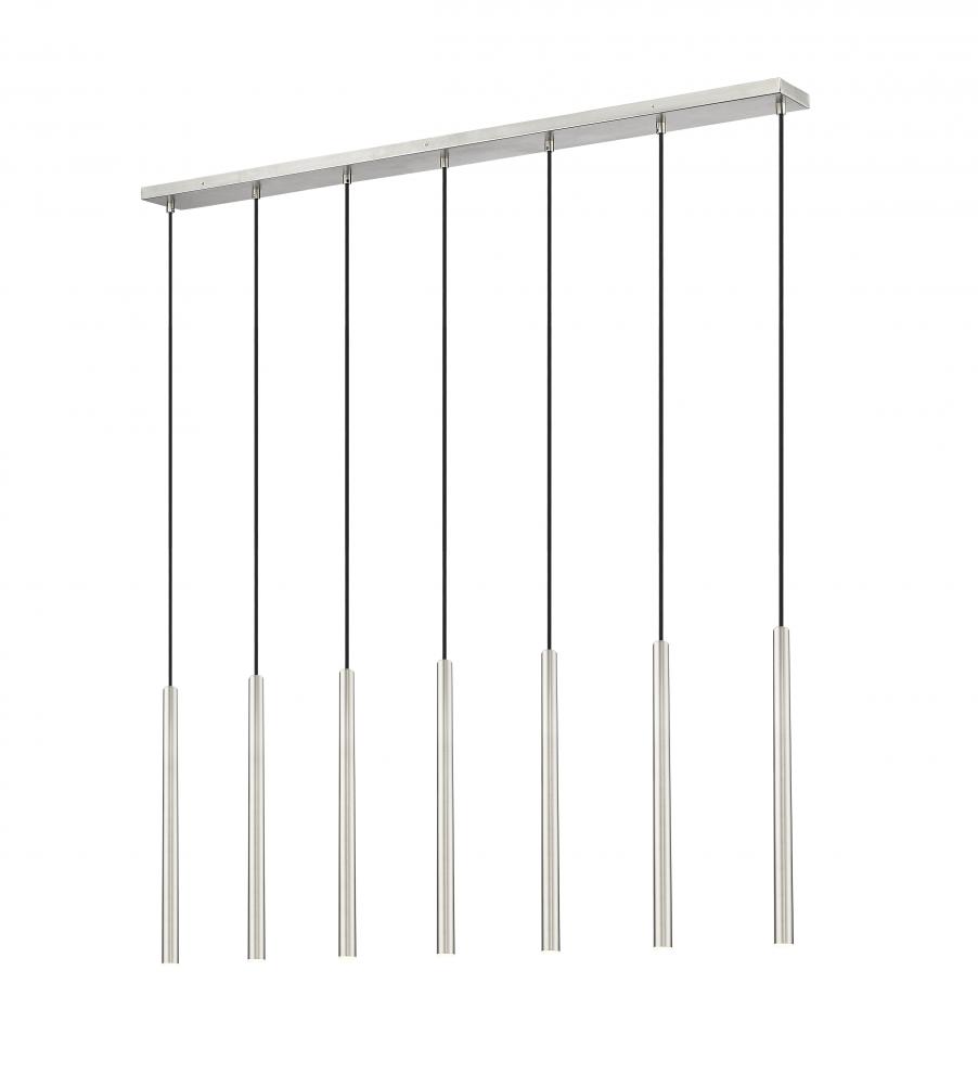 Reimagine a modern space with the sleek contemporary style of this seven-light linear chandelier. A striking choice over a kitchen island or dining table, it sets the tone with integrated LED lights that are both dimmable and energy efficient. A brushed nickel finish blends with any surrounding decor and emphasizes its streamlined aesthetics to perfection.