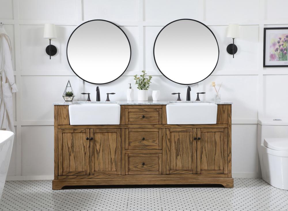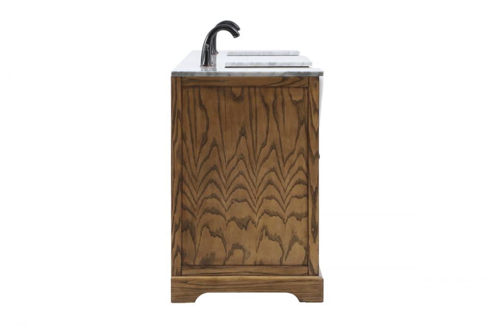 Make the most of your space with this farmhouse style bathroom vanity. Complements well with its beautiful finish, carrara white marble countertop, and the contemporary slender handle bar that sits on the functional drawers with soft closing mechanism, allowing you to store an assortment of bathroom essentials. The lower shelf makes it the perfect space to hold new towels for your guests. This stylish vanity ensures both form and function in your bathroom for you and your guests.