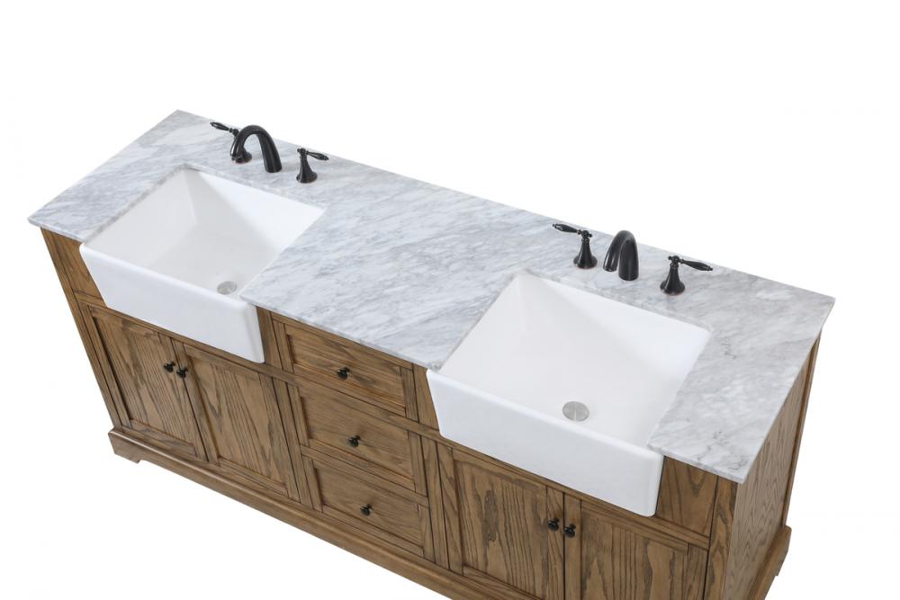 Comes with an apron porcelain sink and durable marble stone top in carrara white finish