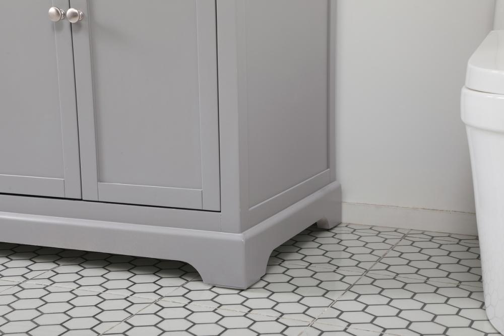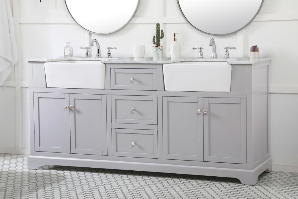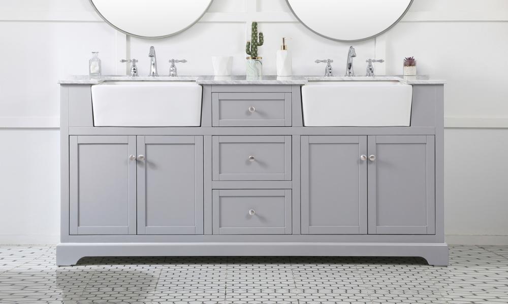 Make the most of your space with this farmhouse style bathroom vanity. Complements well with its beautiful finish, carrara white marble countertop, and the contemporary slender handle bar that sits on the functional drawers with soft closing mechanism, allowing you to store an assortment of bathroom essentials. The lower shelf makes it the perfect space to hold new towels for your guests. This stylish vanity ensures both form and function in your bathroom for you and your guests.