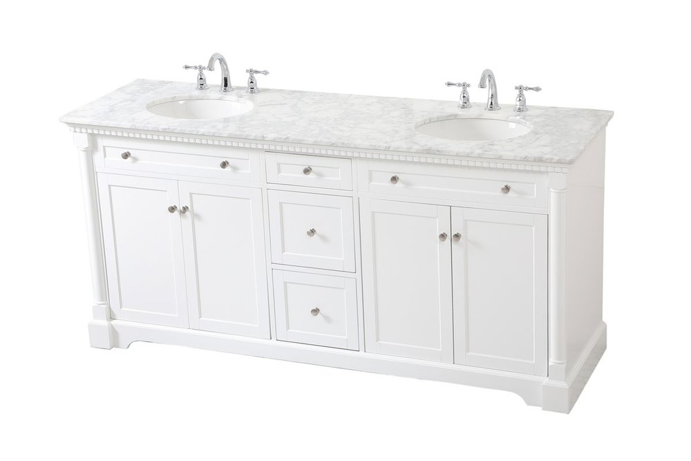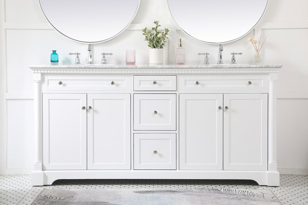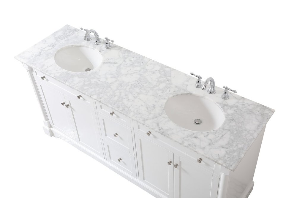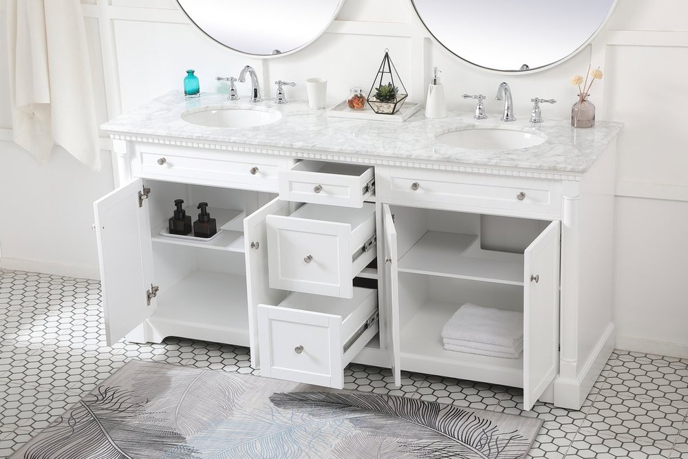 Make the most of your space with this traditional style bathroom vanity. Its traditional style is able to complement many aesthetics, natural marble countertop, and the round brushed nickel knobs that sits above the soft closing doors, allowing you to store an assortment of bathroom essentials. The lower shelf makes it the perfect space to hold new towels for your guests. This compact vanity ensures both form and function in your bathroom or powder room for you and your guests.