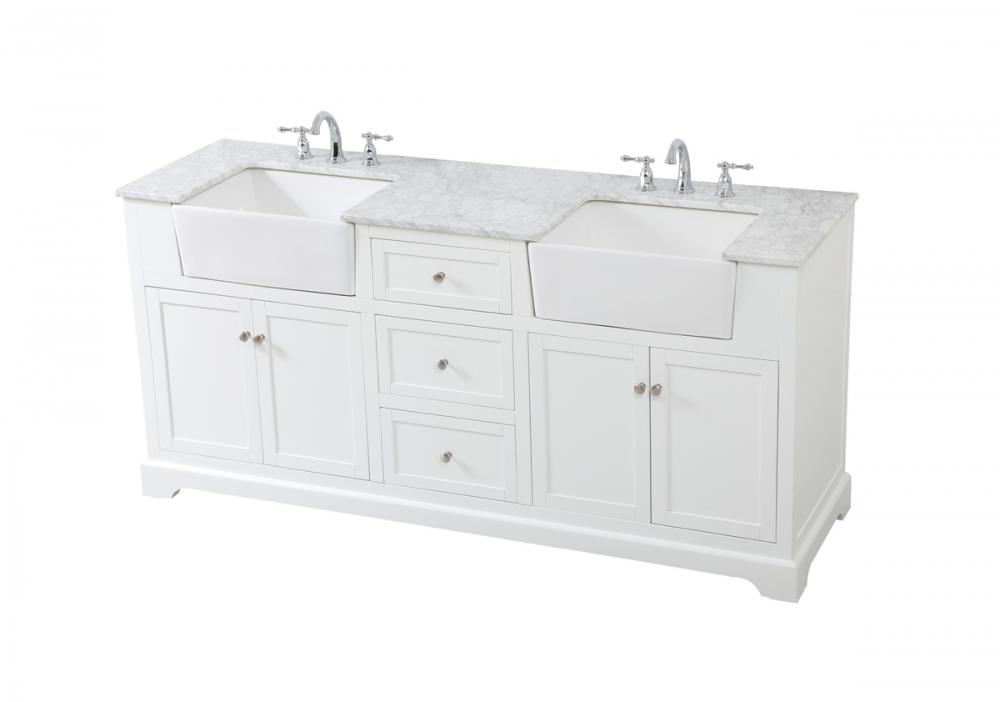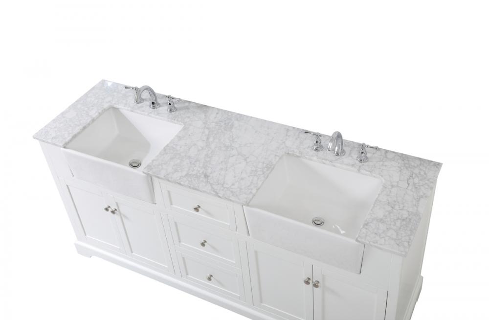 Comes with an apron porcelain sink and durable marble stone top in carrara white finish