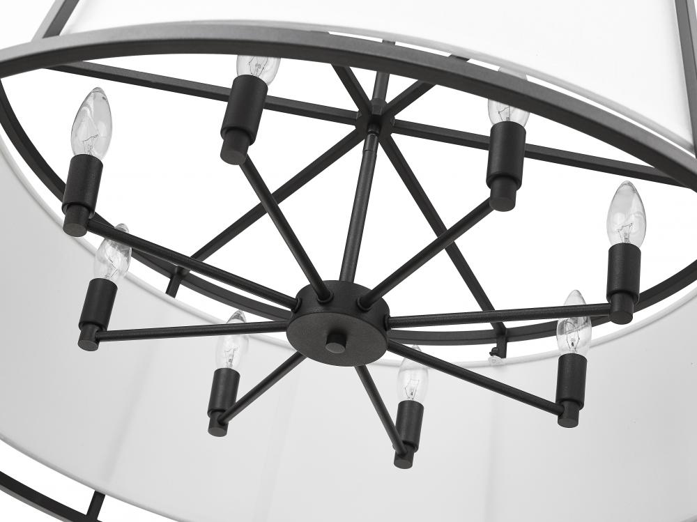 Illuminate your living space with the alluring glow of this elegant, eight-light pendant. With a versatile design that works well in almost any room, this sophisticated fixture blends an iron ore finish frame with a soft, white shade for beautiful ambiance.