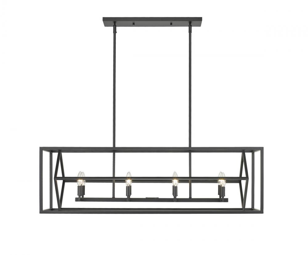Clean lines and a geometric silhouette take this eight-light chandelier for a spin in the best way possible. Candelabra lights illuminate your space while the matte black finish offers an aesthetic appeal.