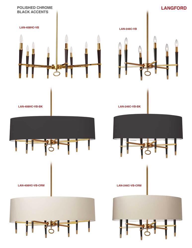 Combining elements of both traditional and modern styles, the Langford family of lighting is boldly understated. Sophisticated and versatile, it's available in configurations to suit any size space. The horizontal or compact chandelier frame is crafted in metal, with a choice of finishes contrasting the arms of the design. The lights are set vertically, with traditional flame-like bulbs. An optional fabric shade creates a more subtle glow. There's a Langford light that's perfect for your mid-century to contemporary dining room, living room or kitchen.