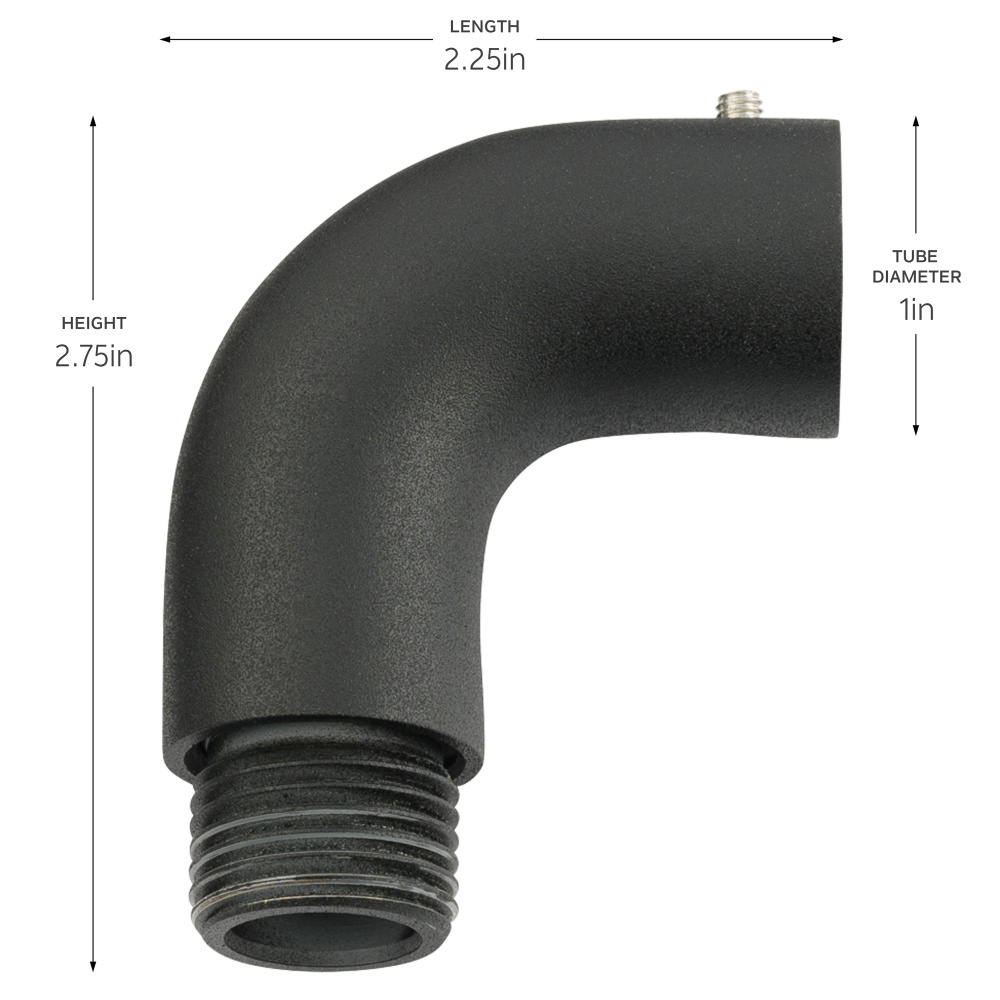 12V Brass 90 Degree Elbow in Black Brass is ideal for creating clean, professional lighting installations that stand the test of time. Expertly crafted from solid, cast brass to deliver unmatched durability, even in the harshest weather conditions and coastal environments. Its sleek black finish provides an attractive alternative to traditional brass, ensuring seamless coordination with other fixtures. Designed for compatibility, it features a ½-inch male thread, making it easy to pair with any Kichler fixture that uses a half-inch threaded base.