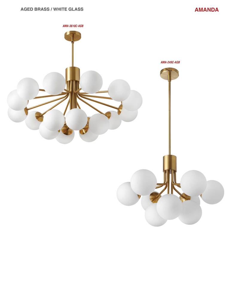 With graceful curved lines and round glass lights, the Amanda family of lighting adds a note of Parisian-style charm to any modern décor scheme. It's a statement chandelier perfect for dining, living, or master bedrooms, or to set a stylish tone in the foyer. The look is bright, beautiful, and thoroughly contemporary, with a metal body available in your choice of finish and configuration. White glass creates softer, face-friendly lighting that illuminates without glare. The Amanda family of lighting offers contemporary glamour with a note of luxury that is sure to be noticed.