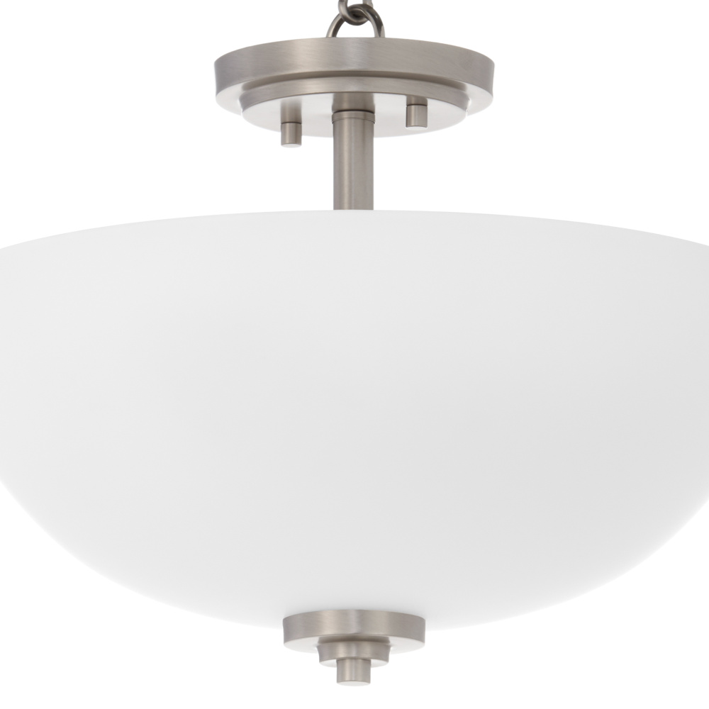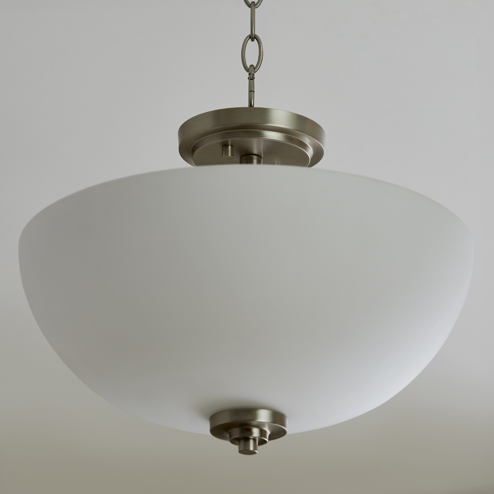 Blending traditional charm with practical versatility, the Adam collection features a dome-shaped shade in your choice of satin opal or hammered glass. Finished in matte black, satin nickel, or aged brass, this collection includes a pendant and flush mount design. Upgrade your spaces today with the Adam series.