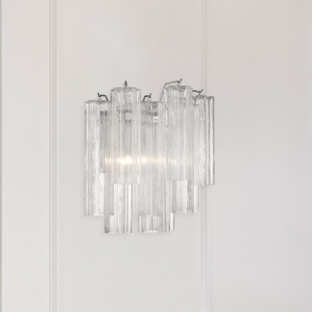 The captivating Addis Lighting Collection is a modern-day interpretation of the iconic mid-century Tronchi chandelier. Inspired by its predecessor's sleek lines and geometric shapes, the Addis features a polished Chrome or Aged Brass metal frame that exudes sophistication and style. Its unique design showcases transparent tiers of textured Tronchi glass tubes, forming a mesmerizing 5-point rounded star shape. Choose from a range of glass colors, including clear, amber, smoke, and white, or the stunning Autumn option, which features a captivating multicolor disposition of amber, clear, and smoke Tronchi glass. The Addis Lighting Collection offers various sizes and finishes, allowing you to find the perfect fit for your space while adding a touch of timeless elegance.