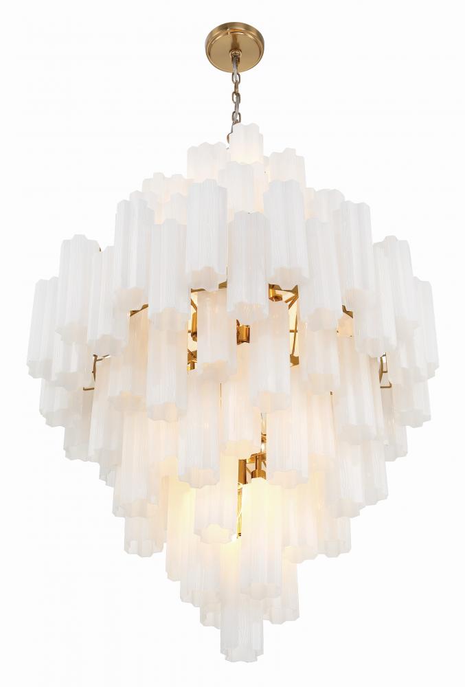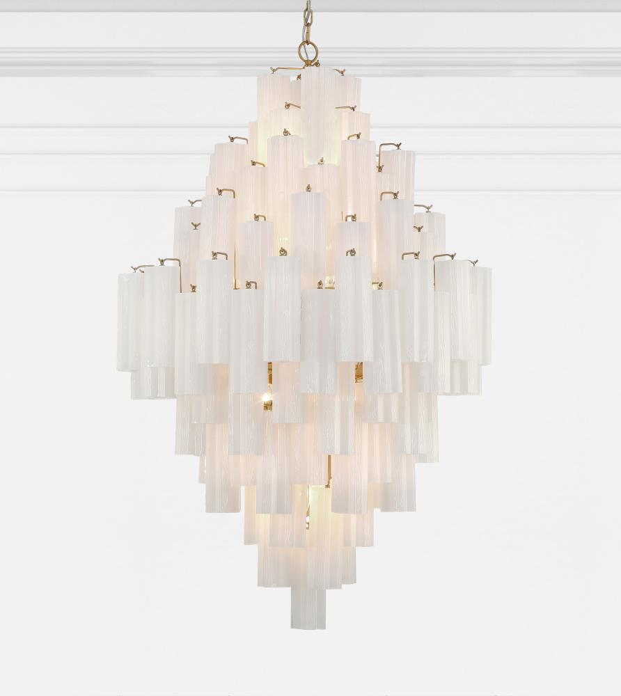 The captivating Addis Lighting Collection is a modern-day interpretation of the iconic mid-century Tronchi chandelier. Inspired by its predecessor's sleek lines and geometric shapes, the Addis features a polished Chrome or Aged Brass metal frame that exudes sophistication and style. Its unique design showcases transparent tiers of textured Tronchi glass tubes, forming a mesmerizing 5-point rounded star shape. Choose from a range of glass colors, including clear, amber, smoke, and white, or the stunning Autumn option, which features a captivating multicolor disposition of amber, clear, and smoke Tronchi glass. The Addis Lighting Collection offers various sizes and finishes, allowing you to find the perfect fit for your space while adding a touch of timeless elegance.