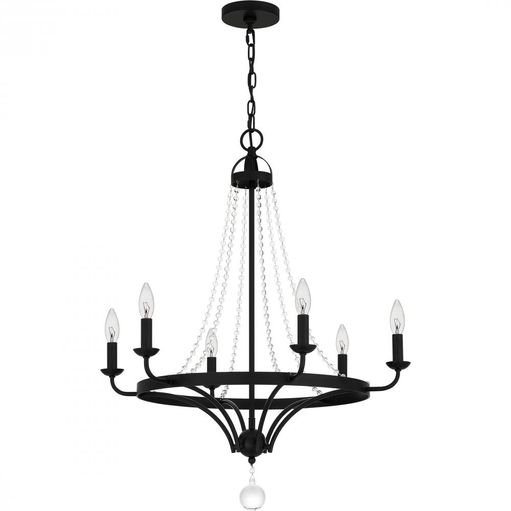 Matte black and crystal make a beautiful, unexpected pairing. The Adelaide series, available as a semi-flush mount, pendant, or chandelier, is a study in contrast with a hint of French country style. Whether above a dining table or perched in a powder room