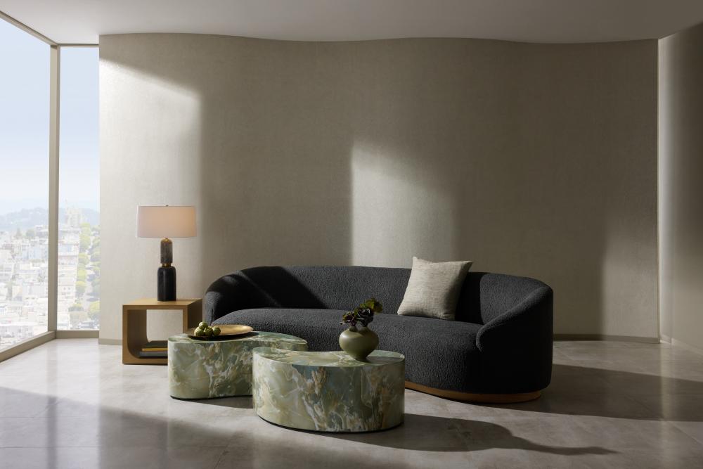 The yin and yang of design means flowing forms must be balanced with organic textures, and accents are always more impactful in pairs. This is why the faux marble Adeline was made as two parts of a whole. Crafted of concrete, it is both luxe and surprisingly lightweight. Adeline's jade marble-like façade is crafted through a process called hydrographics, assuring each piece will vary slightly in color and veining.
