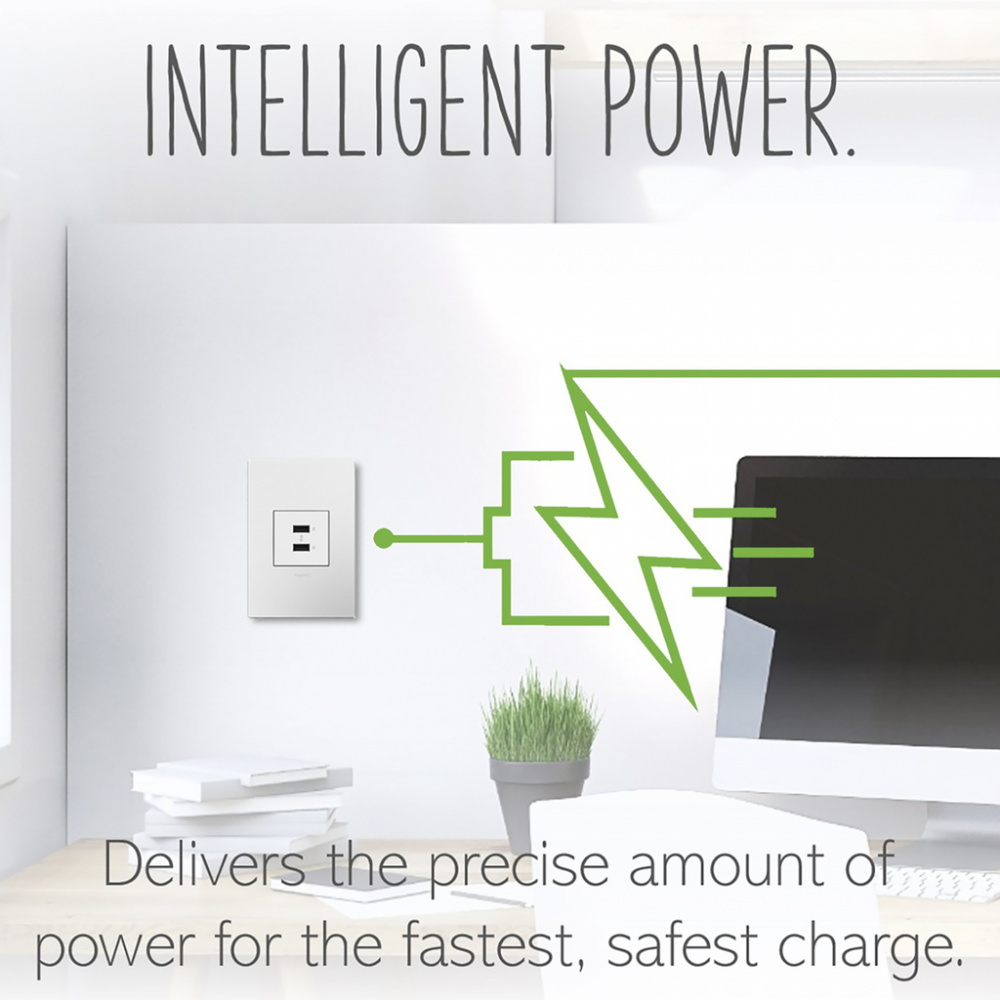 Charge phones, tablets and more up to 40% faster, with Ultra-Fast USB Outlets from the adorne? Collection. Delivering a leading 6 amps of power to its two USB connections for faster in-wall charging, without an adapter. Made exclusively for use with screwless Wall Plates from the adorne? Collection, sold separately.