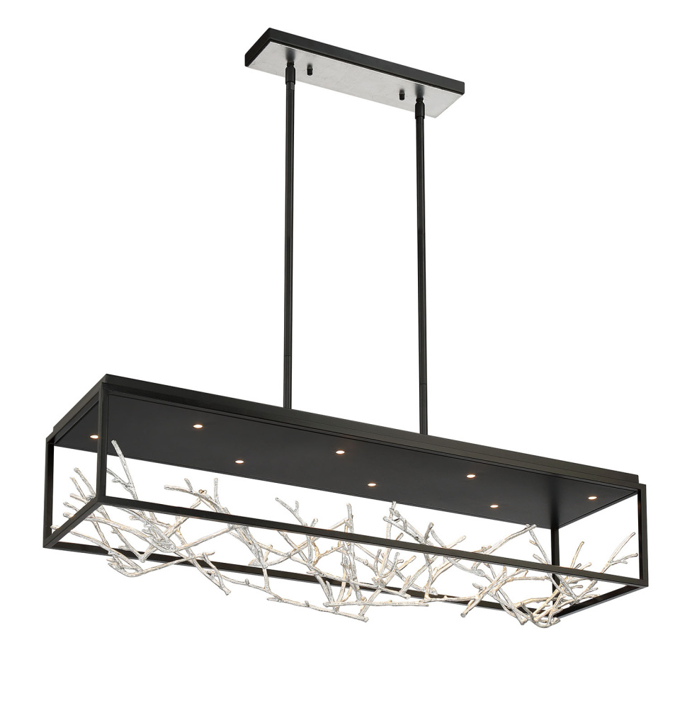 Free-flowing, gilded branches of gold and silver float elegantly within a stylish open cage constructed of cast brass and finished for the rigors of outdoor environments. The thin twigs are handcrafted with metal foil and accentuated by pinhole recessed LED lighting to add a luxurious glow to this nature-inspired collection.