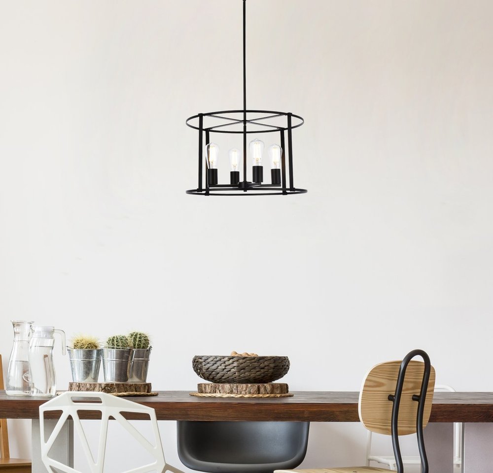 Agnys 4 lights pendant in black is the perfect fixture for over a kitchen island, over a dining table, or use in any room to make a big statement. This pendant elevates the look of any space.