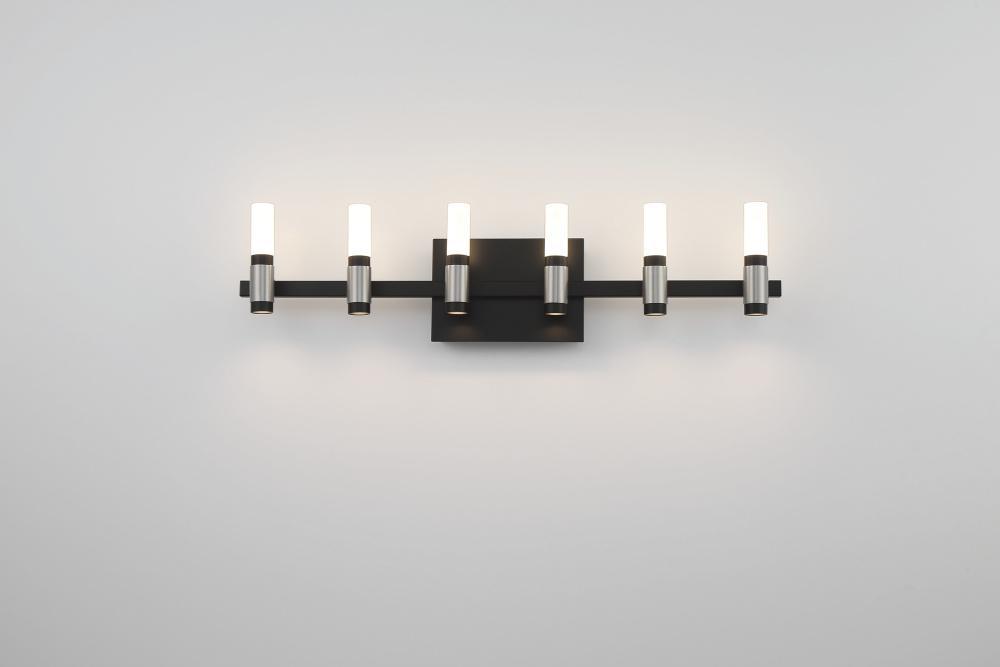 A soft industrial design features LED lights that are nestled within candleholders accented with contrasting toned collars. The combinations of black and nickel and black and gold have inspired a new wave of trends that blend vintage ideology with modern styles.