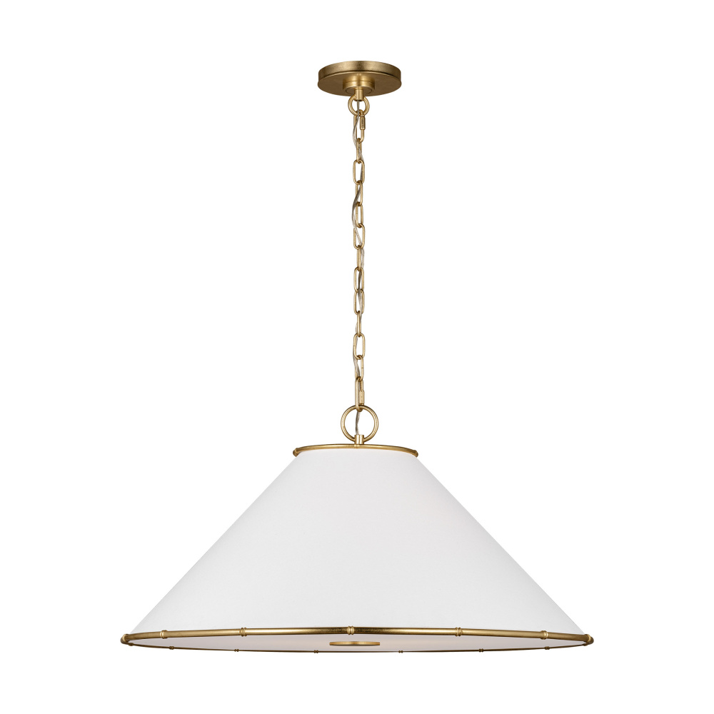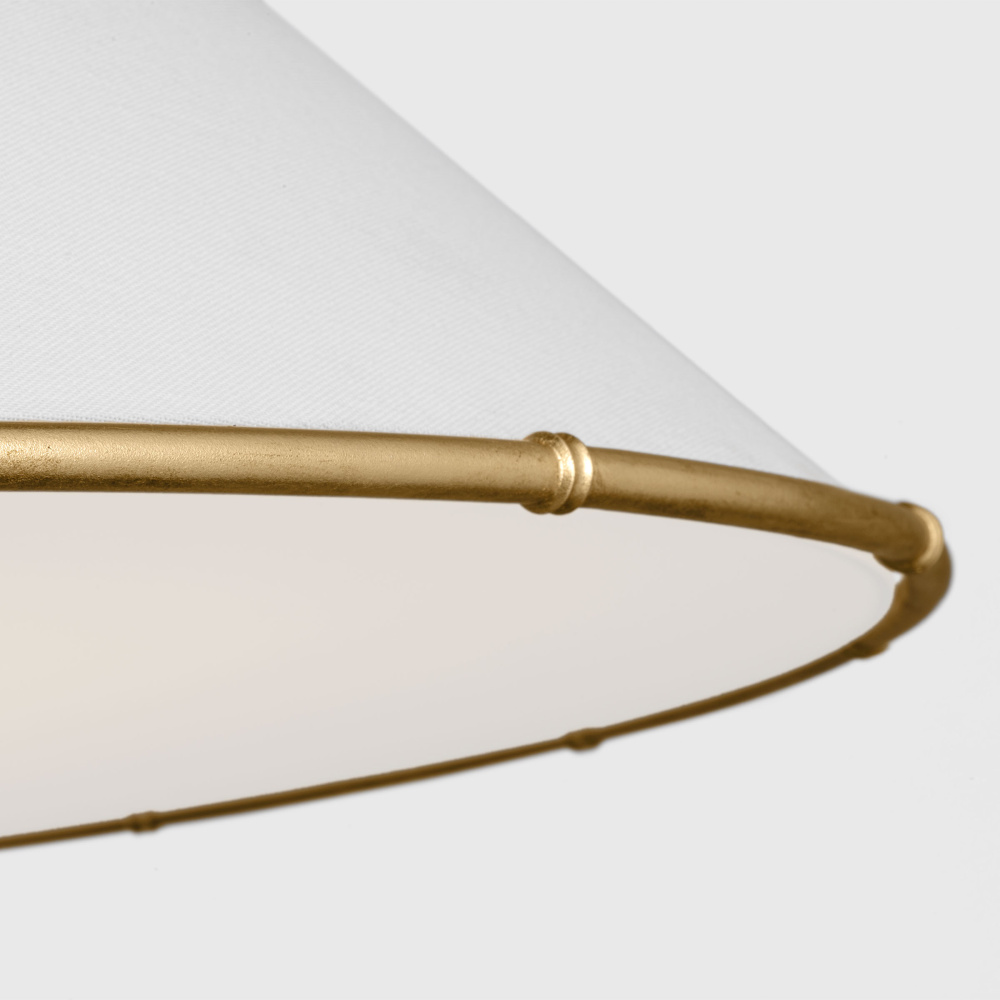 Crafted with Steel in a Gild finish with silk screen white inside clear outside glass diffuser and white linen fabric shade