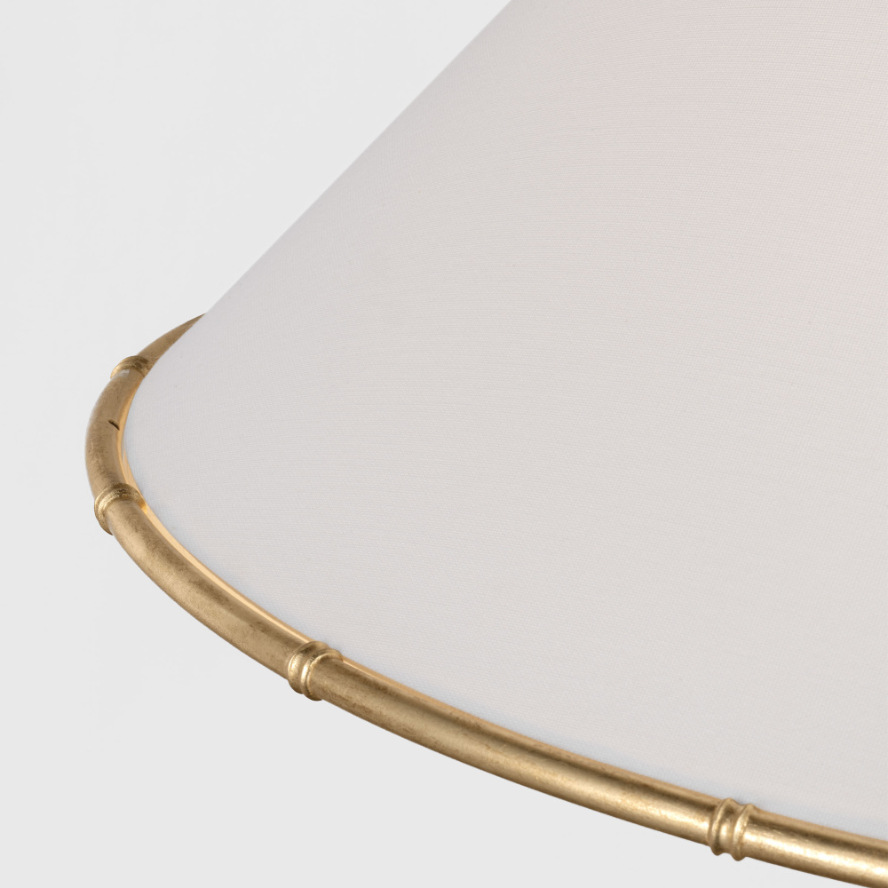 Crafted with Steel in a Gild finish with silk screen white inside clear outside glass diffuser and white linen fabric shade