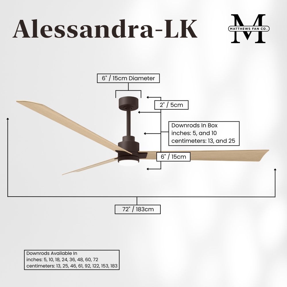 Minimal form with maximum efficiency. with a wide range of sizes, the Alessandra can accommadate any size space. This thoughtfully crafted and versatile fan will complement any aesthetic and improves the health and comfort of any room. Highly customizable, the Alessandra is available in 5 different body finishes, 7 blade options and even a color changeable light kit. Suitable for fully exposed outdoor areas. Backed by a limited lifetime warranty, our fans are of the highest quality and will dutifully perform for years to come.
