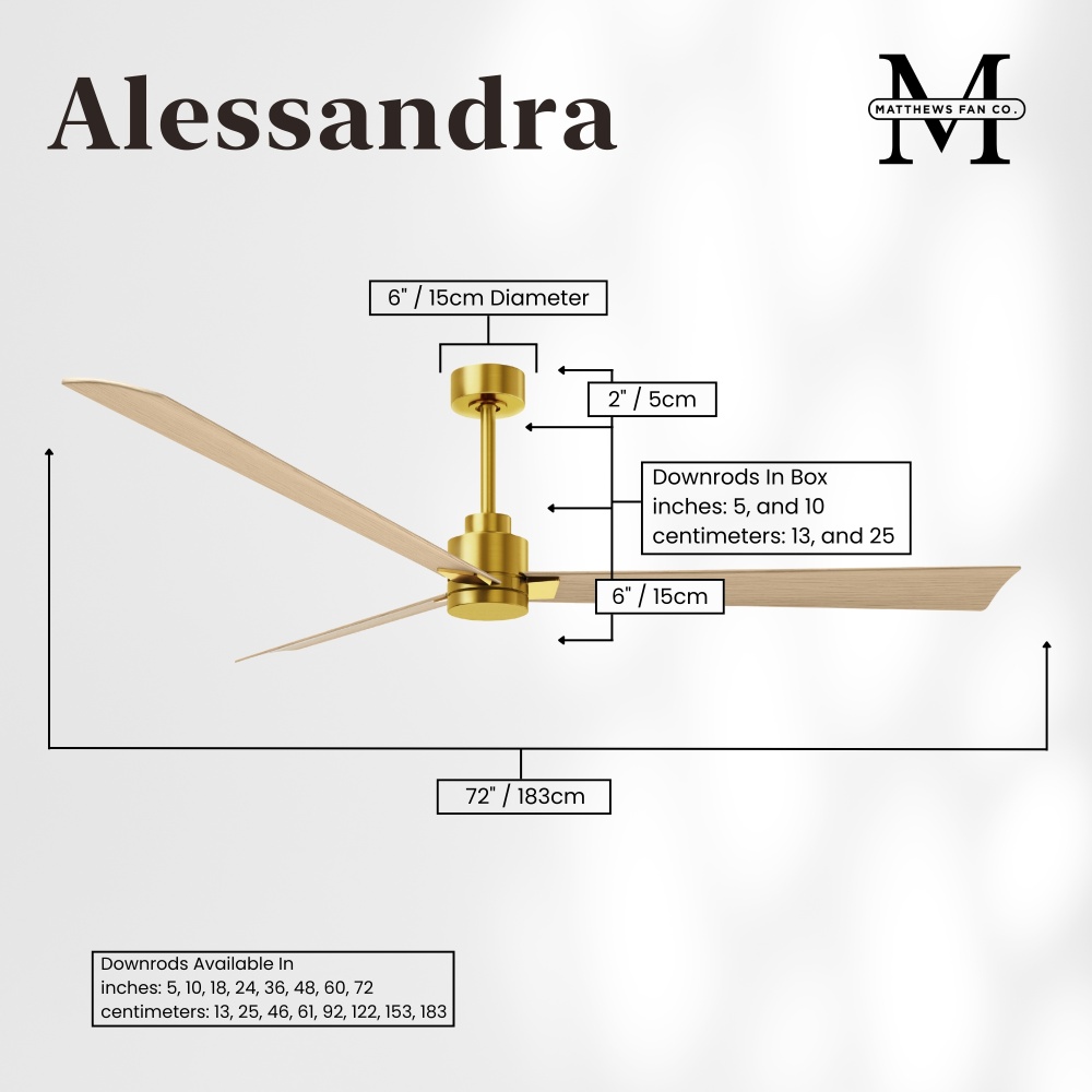 Minimal form with maximum efficiency. with a wide range of sizes, the Alessandra can accommadate any size space. This thoughtfully crafted and versatile fan will complement any aesthetic and improves the health and comfort of any room. Highly customizable, the Alessandra is available in 5 different body finishes, 7 blade options and even a color changeable light kit. Suitable for fully exposed outdoor areas. Backed by a limited lifetime warranty, our fans are of the highest quality and will dutifully perform for years to come.