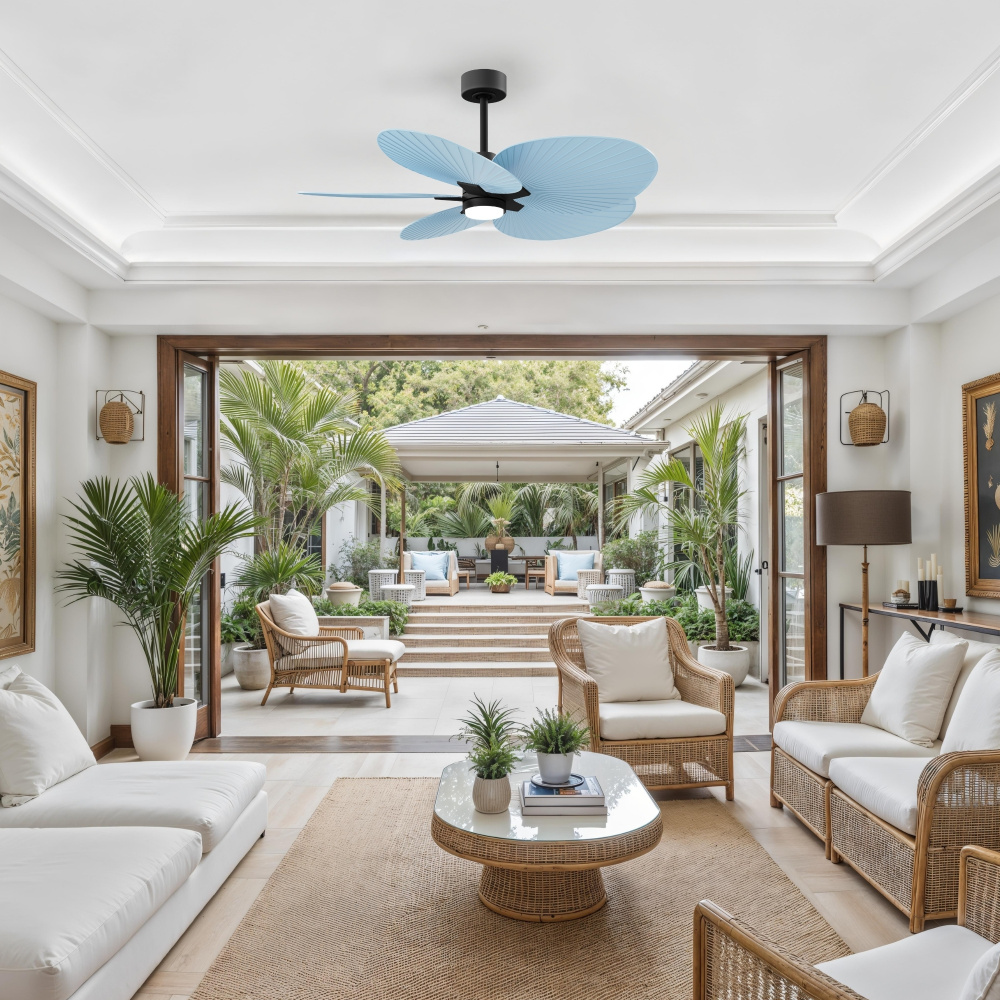 Minimal tropical form with maximum efficiency in 48". The thoughtfully crafted and versatile wet location Alessandra Tropical will complement any aesthetic and improve the health and comfort of any room. Highly customizable, the Alessandra Tropical is available in 5 different body finishes, 10 blade finish options and color changing light kit. Backed by a limited lifetime warranty, our fans are of the highest quality and will dutifully perform for years to come.