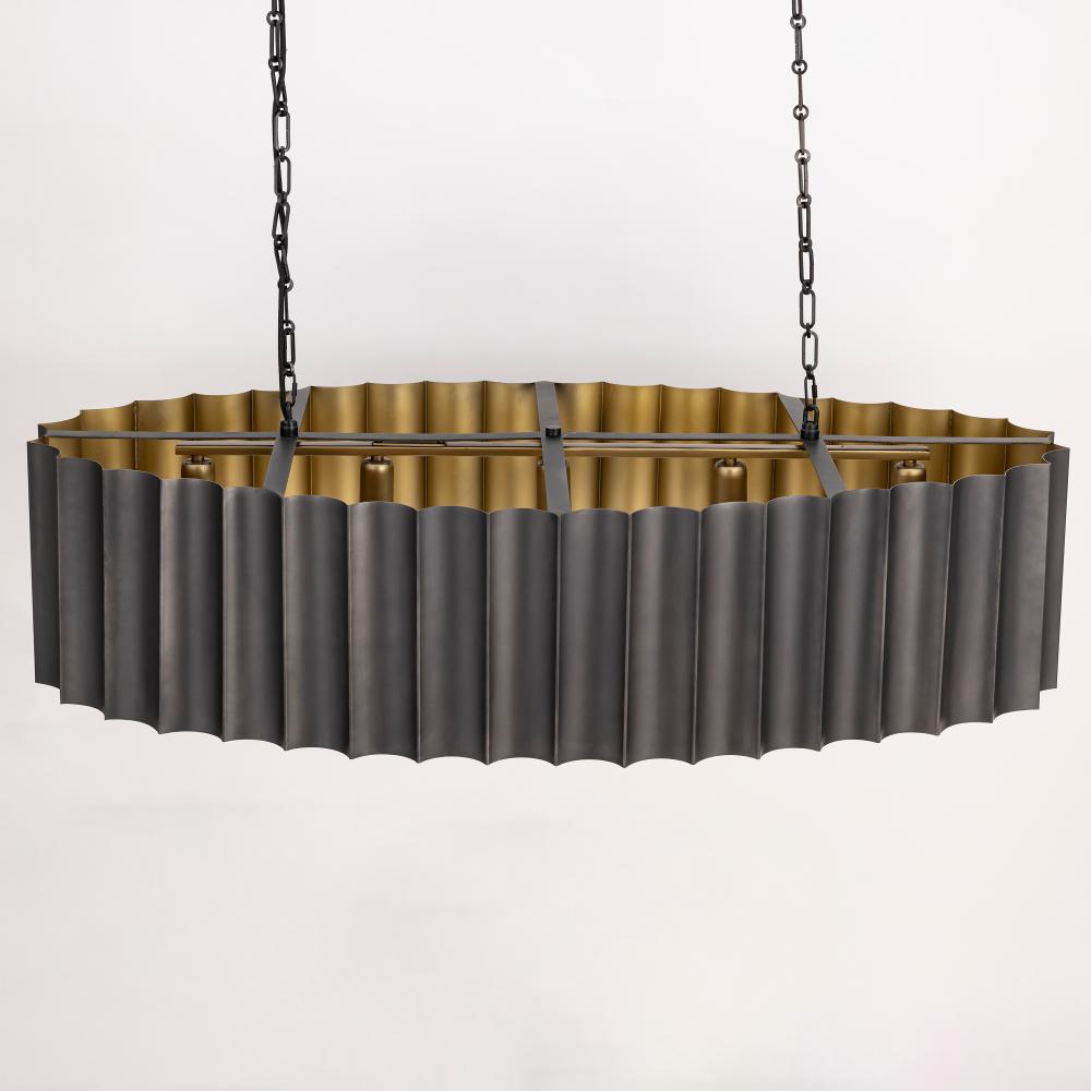 With graceful repetition and bold geometry, the Allegra collection strikes a balance between softness and structure. Scalloped metal drum shades form rhythmic silhouettes that feel both architectural and graceful. Offered in a range of pendant sizes, an AD
