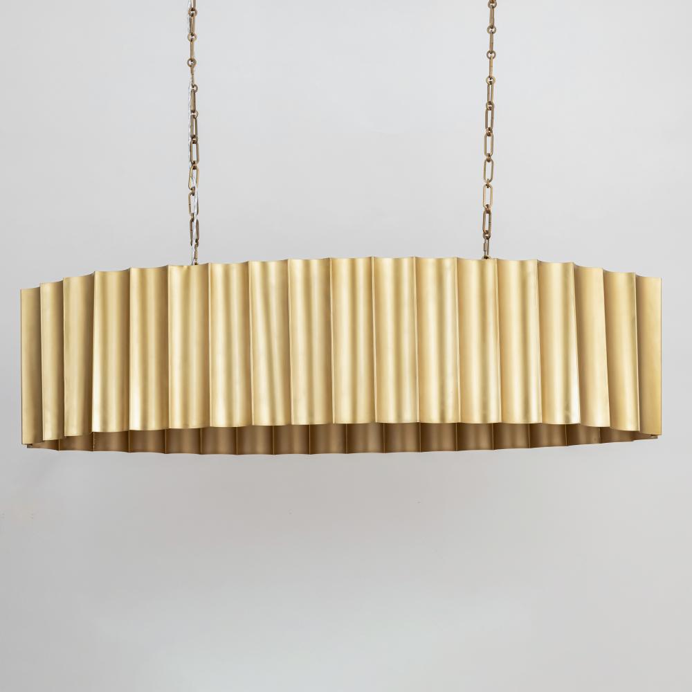 With graceful repetition and bold geometry, the Allegra collection strikes a balance between softness and structure. Scalloped metal drum shades form rhythmic silhouettes that feel both architectural and graceful. Offered in a range of pendant sizes, an AD
