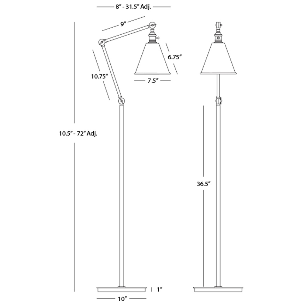 Alloy Task Floor Lamp in Polished Nickel Finish and cased white glass shade has a sleek mechanical function in mind. Crisp geometry and polished metal make this piece the perfect choice to elevate your space.
