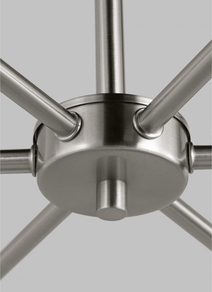 Alvin embodies a classic Midcentury design. The arms of the chandelier are on a pivot to direct light in any specific direction. The brushed nickel silver, Midnight Black or Satin Brass, and opaque white combine creating an elegant color palette that will work well in almost any décor.