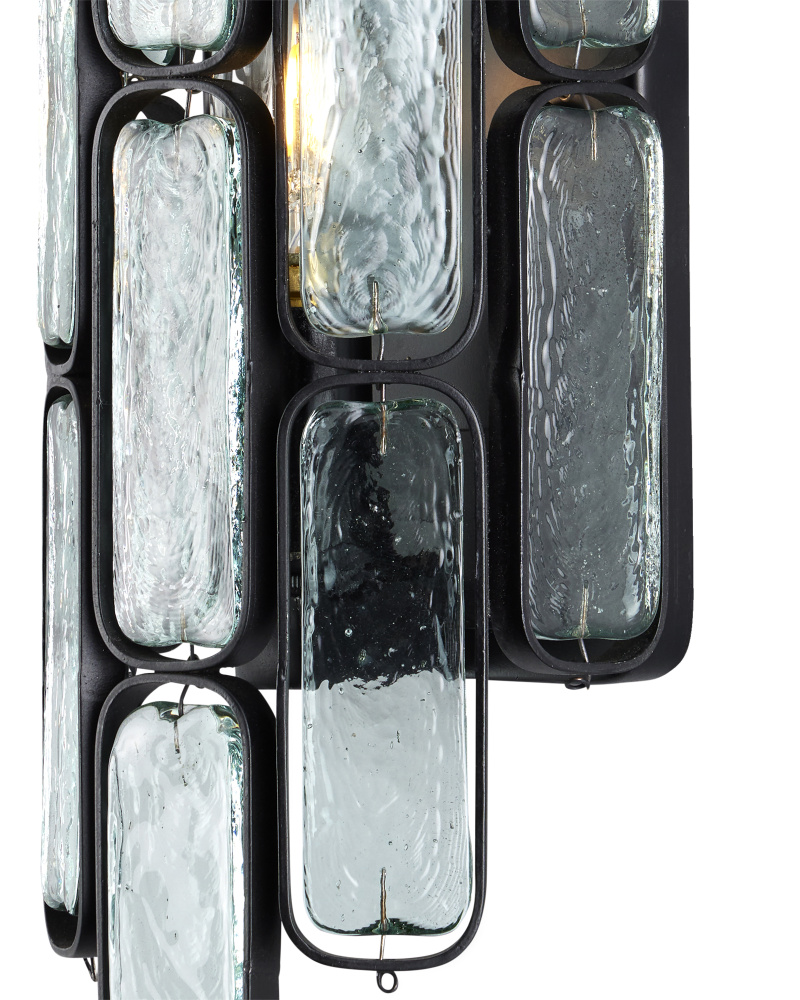 The Andalusia Wall Sconce is a gem of a fixture with its Moroccan-inspired shape and composite quartz stone covering the light source. The backplate and nuts that fasten the luminous shade to the sconce and the wall are in a Hiroshi Gray finish. The interior of the wrought-iron sconce is in a sugar white finish to enhance the glow. The sconce is ADA compliant.