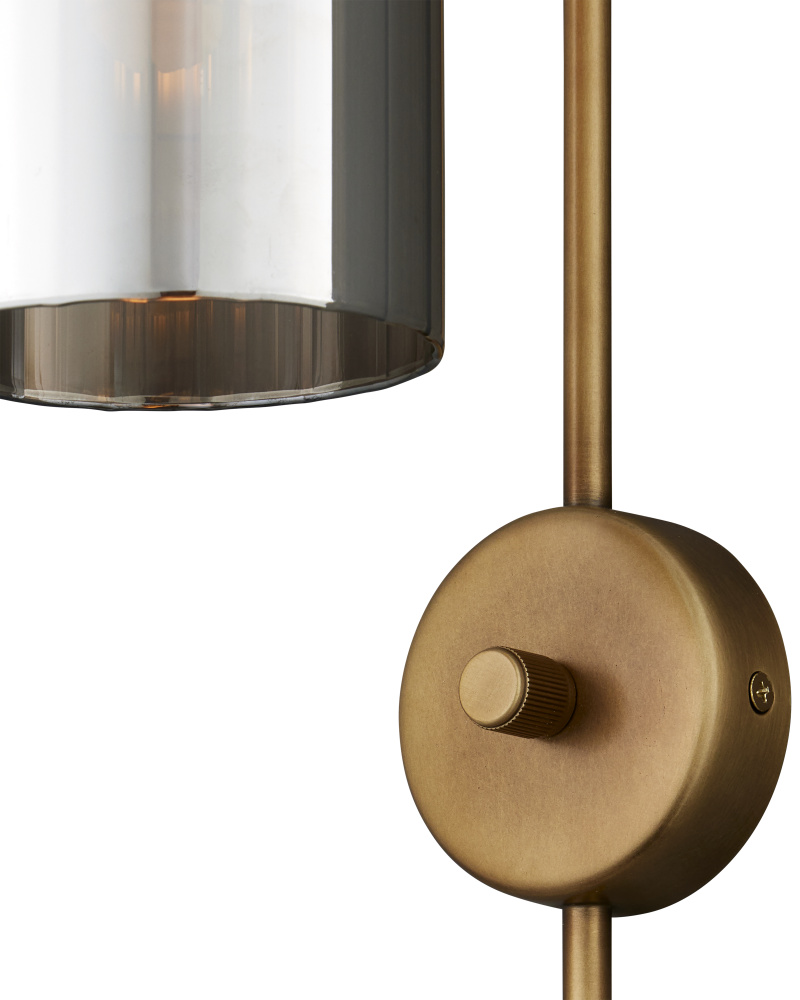 The Andre Brass Wall Sconce is made of wrought iron in a brass finish. The telescoping feel to the design is reminiscent of brutalist sculpture, though the lines are so pared-down, the gold sconce has a modern profile. Design details of note are how the candle-arms are square instead of round and the bobeches are so minimal they all but disappear.