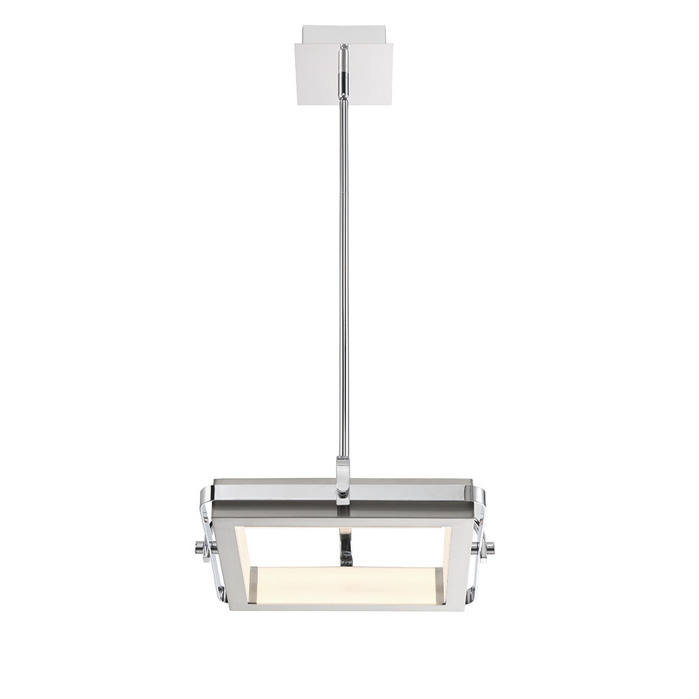 A thick metal band encircles this pronounced industrial design. The squared ring supports integrated LED for an inward glow, while the polished chrome complements the nickel for a strong composition.