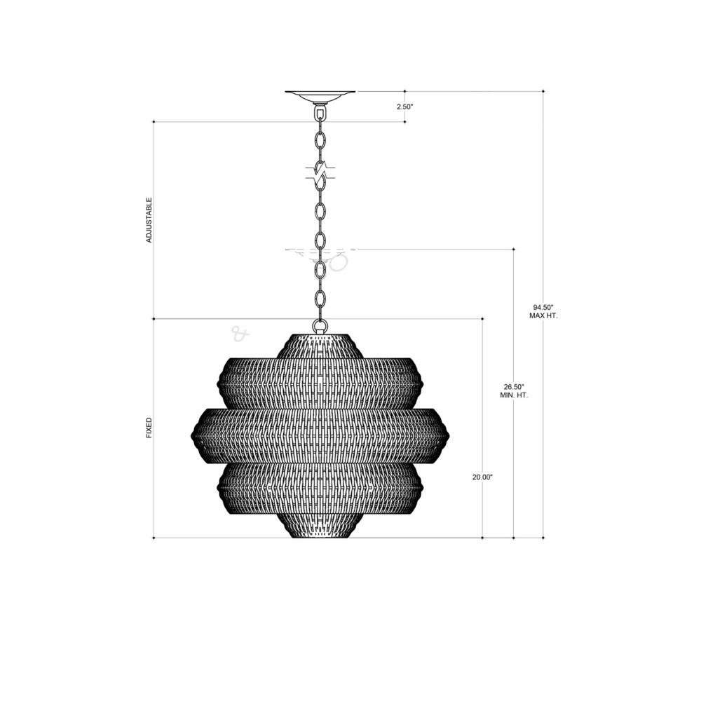 Painstakingly woven by artisans who use traditional techniques, the Antibes Small Chandelier is a marriage of artistry and high-quality construction. Natural rattan forms the body of this geometric chandelier supported by a wrought iron frame in a khaki finish. The rattan chandelier is one of several fixtures in the Antibes family. Adjustable from 26.5" to 94.5" with use of included chain/rod kit/cable. If your space calls for a longer drop, additional chain/rods/cable is available for purchase.