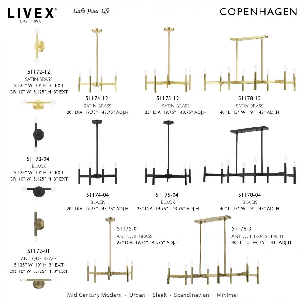 Exposed bulb sockets are fixed over antique brass to create an eclectic look perfect for mid century modern or transitional spaces wanting an industrial touch.