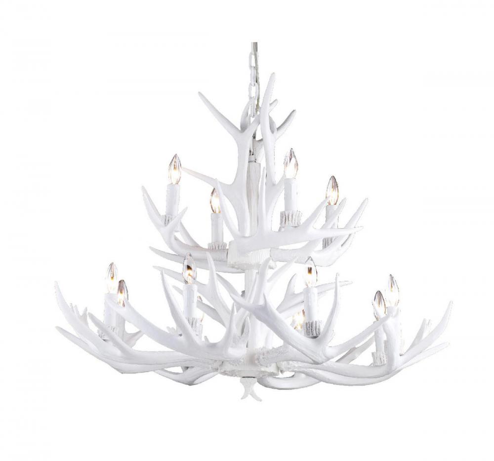 This fixture is in a white finish made out of a Polynesian material to create its antler figure. Twelve bulbs (sold separately) can provide better illumination. Exquisite fixture can be used in modern vanities, hallways, and more.