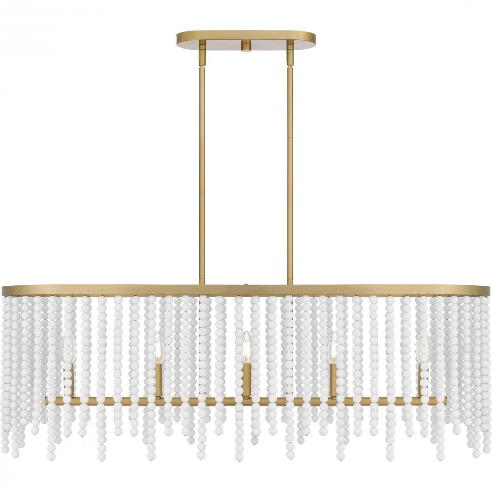 The Apelle collection takes a fun, playful approach to classic lighting design. White wood beads add a touch of glamour to the otherwise simple silhouette, while an aged brass finish completes the look with warmth. Choose from a pendant light, semi-flush m