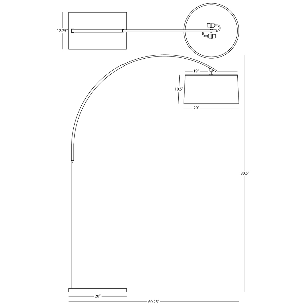Polished Nickel Finish Archer Floor Lamp with White Brussels Linen Shade with Self Fabric Bottom Diffuse - The Archer floor lamp is balanced with organic lines to make it feel light, ethereal, and contemporary