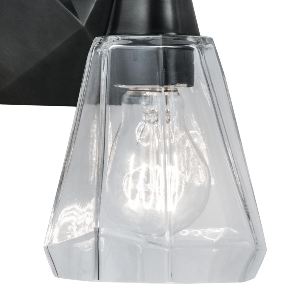 The unique textured back plate of the Arctic brings the pattern trend in home interiors to bath lighting. With the substantial faceted glass diffusers the fixtures exemplifies high quality. Available in 1, 2, and 3 light sconces all accommodate a 60 Watt Medium Base