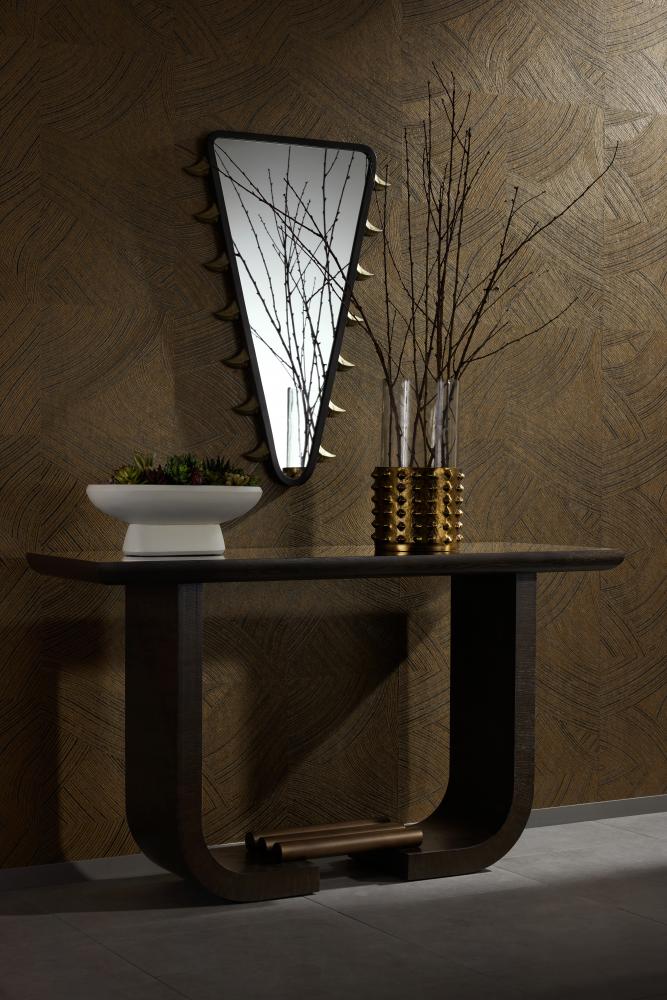 Reminiscent of ancient armor, this hurricane is a marriage of materials and aesthetics. A bold and textural cast aluminum brass finished base sets off a clear container of glass designed to hold a pillar candle.