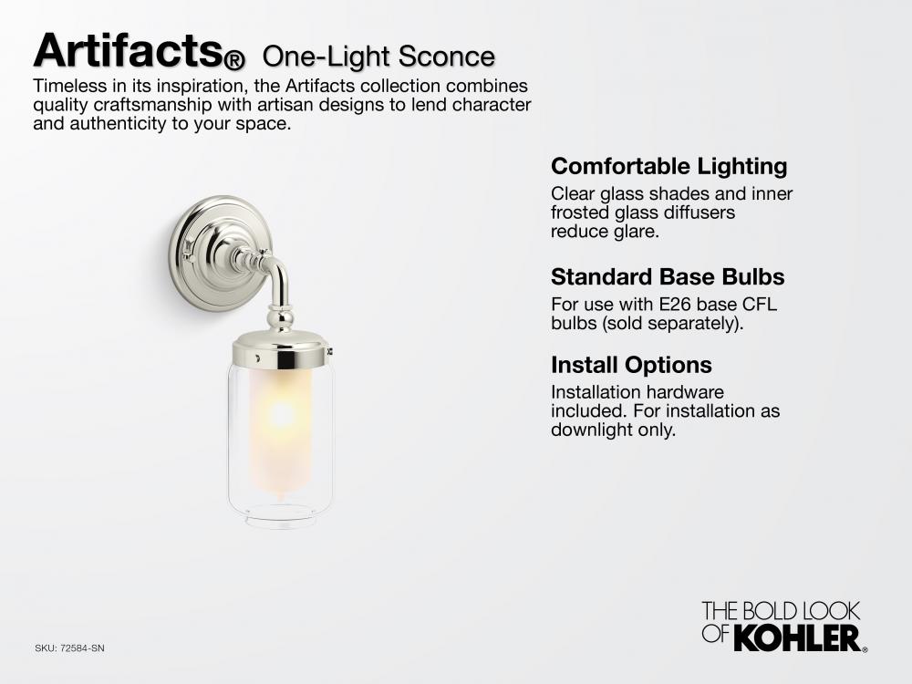 Timeless in its inspiration, the Artifacts collection combines quality craftsmanship with artisan designs to lend character and authenticity to your space. This Artifacts single wall sconce is an elegant complement to vintage-inspired bathrooms.